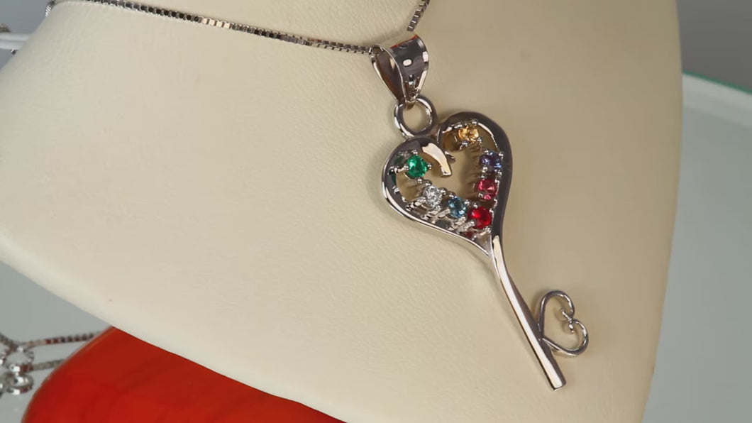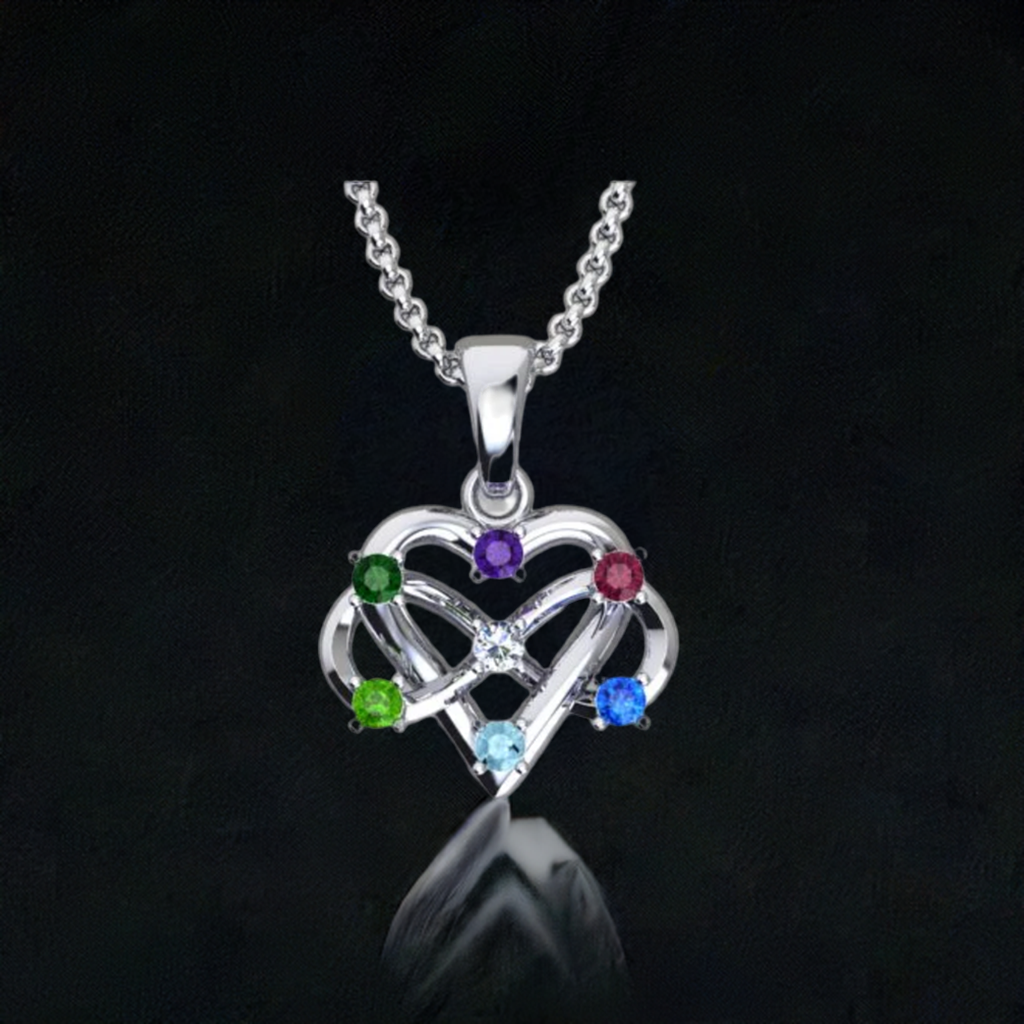 Our custom designed mother's pendants are made by the Moriarty family. All natural birthstones with the highest quality Diamonds set in gold and platinum metals. Design your mother's necklace today.