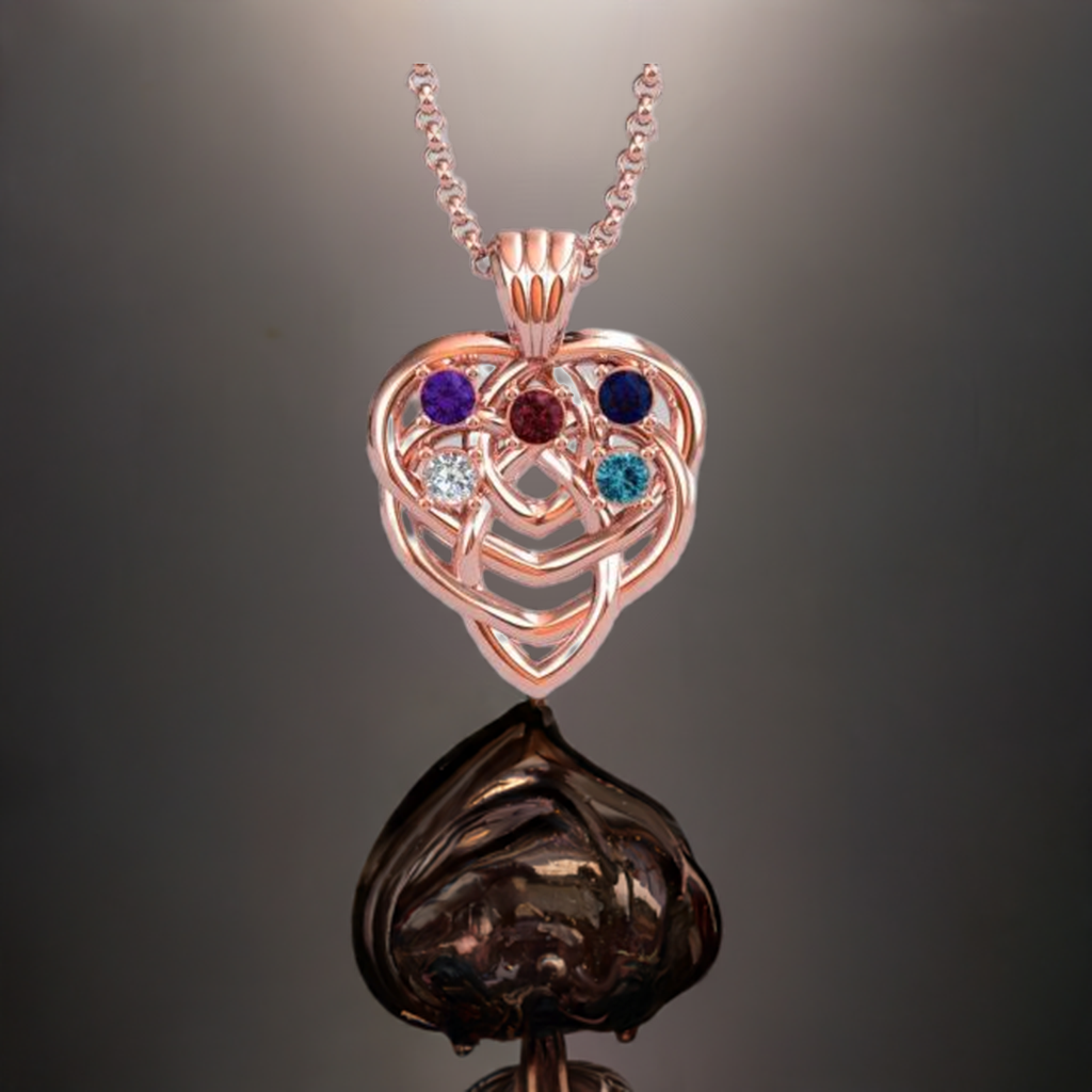 Our custom designed mother's pendants are made by the Moriarty family. All natural birthstones with the highest quality Diamonds set in gold and platinum metals. Design your mother's necklace today.
