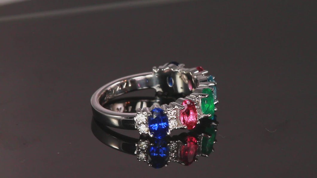 Our 6 stone mothers ring collection includes some of the most unique designs of mothers rings you will find on the market today. Almost all of our designs are custom created and can be made in metals such as 14kt yellow/white gold, 18kt yellow gold, rose gold, sterling silver, palladium and platinum. No matter what color or what metal you like, a six stone mother's ring can be made just for you. And we don't stop there. Each made-to-order ring is also set with the most incredible natural birthstones you have seen. Each birthstone is handpicked by the owner, Steve Moriarty. Being a master gemcutter, the cut, color and clarity of all the birthstones and Diamonds is very important to him. Can't find something you like? We make 100's of custom one-of-a-kind designs for customers just like you. Just call us and we would be happy to help you create a mothers ring that is just for you.