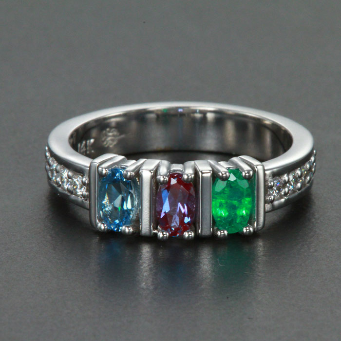 Our custom designed mother's rings are made by the Moriarty family. All natural birthstones with the highest quality Diamonds set in gold and platinum metals.