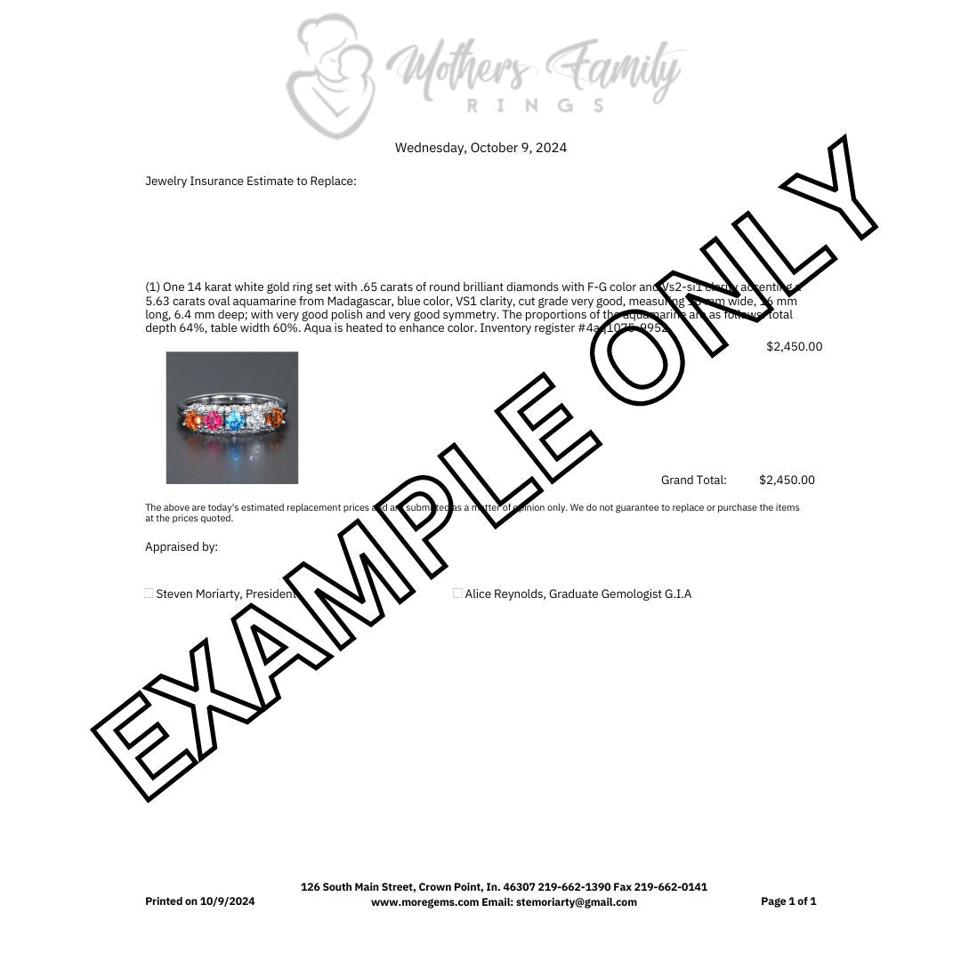 I received my ring the other day...absolutely STUNNING!!! It was perfect! Thank you so very much. Ordering was easy and processing time was very fast. I highly recommend purchasing from Mothersfamilyrings. The quality and craftsmanship is outstanding and their prices are more than fair.
